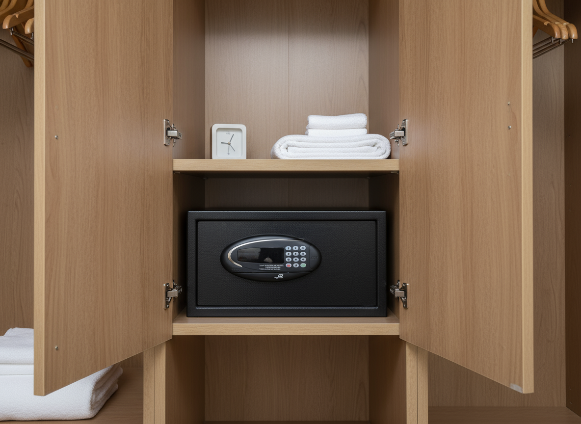 Kasalarımızda dijital şifreleme sistemi bulunur ve misafir çıkışında otomatik sıfırlama özelliği ile yeni kullanıma hazırlanır.